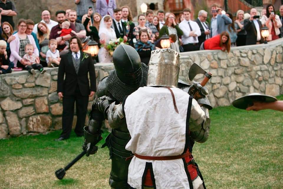 There was drama with the playlist, drama with the bridesmaid dress we altered that still needed altering (thank you safety pins), drama with the Polaroid camera, drama with flowers and more that I probably wasn't aware of. Finally, with everyone seated and watching, the bridal party came down the stairs and lined up in front of everyone where Serisa and Gavin gave a short speech to start off the night. (Side note...this is where Sakura decided to wake up from her nap during all the preparation). Next we all went outside where we chatted until Gavin's friends showed off his favourite sport, armored combat. Just imagine two nights in full armour batting at each other with weapons. It was impressive and went perfectly with the castle setting. Next we got food from the caterers. With around 180 people in attendance the line for food was very long and I was one of the very last because Sakura was not going to handle the line. The food was worth it and Sakura really enjoyed her freshly carved meats. I got to eat in peace because my dad and Liliana watched her for me and they had already eaten. It seemed the night was winding down, but then the dance party started! This was my favourite part of the night because Sakura really got in the groove. To me, she was the highlight. She was jumping, twirling, moving her hips, and having the best time. We were one of the last to stay and clean up and Sakura happily pushed around her pram until we had to leave. It was a long day and I was glad to stay at Serisa's that night because it was so much closer.